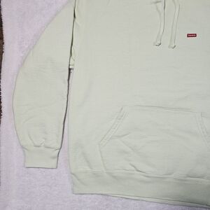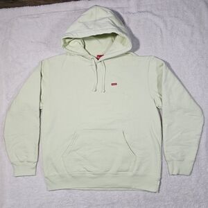 Classic Supreme hoodie in mint green. Features a cozy hood and front pocket.