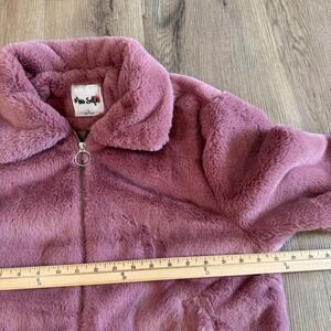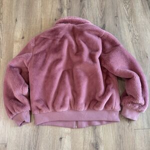 Miss Selfie Pink Faux Fur Bomber Jacket Mauve Pink Collared Size Large EUC