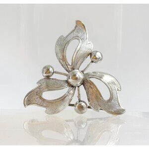 Sterling silver vintage "CC" signed pinwheel brooch. The brooch is textured along the fornt with spheres protruding from the center. Marked as sterling and tested positive as such.
