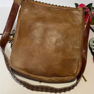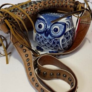 Stylish brown bag with eye-catching studded design and fringe details. Perfect for adding a boho-chic touch to any outfit.