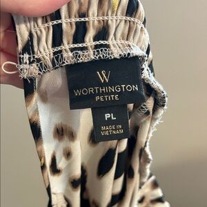 Stylish animal print blouse with ruffle neck. Perfect for adding flair to any outfit.