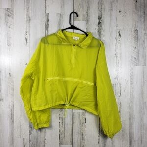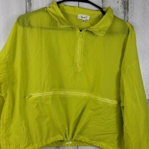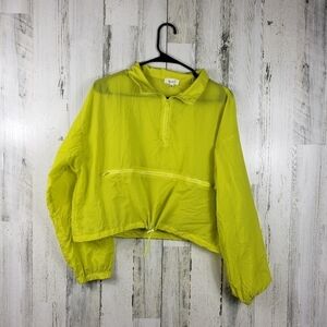 love J Sheer Neon yellow quarter zip cropped jacket women's size large