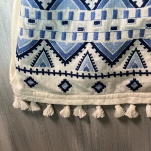Skies Are Blue Ivory and Navy Embroidered Halter Top