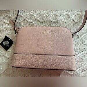 NWT! Elegant Kate Spade crossbody in blush pink. Pebbled leather with gold-tone accents. Perfect for everyday use. Designer. Inside pocket. Measurements in photos. Adjustable strap. Smoke free home