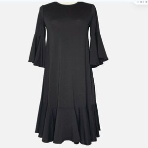 Elegant LuLaRoe dress in classic black. Size 3XL. Versatile and chic. LuLaRoe Maurine Swing Dress Black 3/4 Bell Sleeves High Low Ruffled HemLulaRoe style name "Maurine"