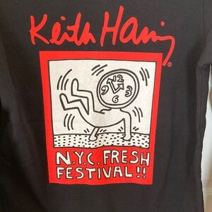 Embrace iconic art with this Keith Haring black sweatshirt. Featuring a bold graphic, it's perfect for a stylish and comfortable look.