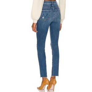 Off-the-grid cool meets everyday comfort. Mother’s The Swooner is a highest-rise skinny jean with an ankle-length inseam and a raw frayed hem for a laid-back, road-trip-ready vibe. Crafted from soft stretch denim, the Weekend Warrior wash features a mid-blue hue with authentic whiskering, fading, and subtle distressing throughout.