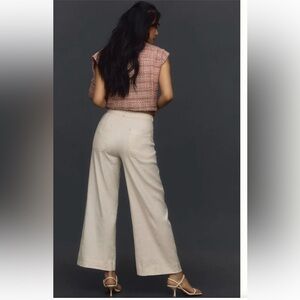 Anthropologie Maeve The Ettie High Rise Crop Wide Leg Pants Linen Edition Contrast Stitch