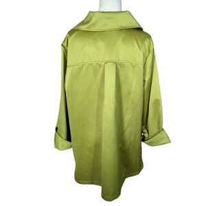 Dennis Basso pistachio martini olive Green Satin Water-Resistant Long Jacket Chic Designer Sz 1X