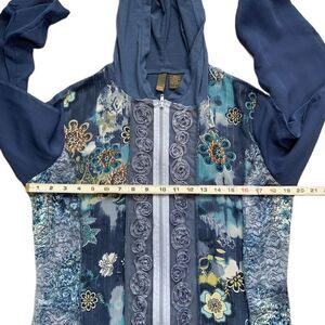 Serenade New York Blue Floral Sheer Zip-up Fairycore Art Aesthetic Jacket Size Large