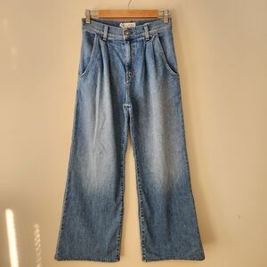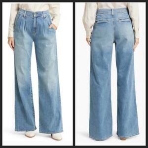 Nili Lotan Flora Pleated Front Wide Leg Jeans in Faded Wash - 25