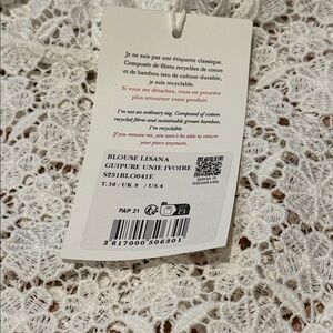 NWT Sezane Lisana Top in Guipure Ivory Size 4