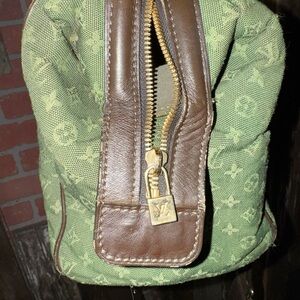 Louis Vuitton Green Denim Mini Lin is EUC. Barely used, clean interior and exterior. Slight rubbing on bottom outer corner, but otherwise no marks, stains or tears. Comes with an unbranded dark brown long strap.