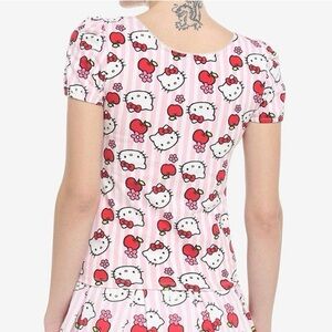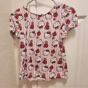 Hot Topic Hello Kitty striped apple flower print scoop neck bow top M Sanrio