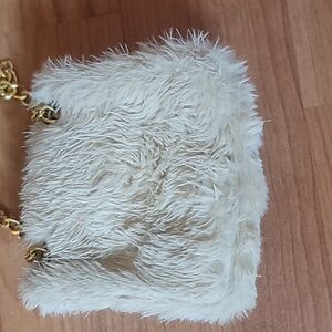 Elegant White Faux KIDS Fur Bag with Gold Chain
