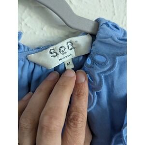 Sea NY Waverly dress size M blue linen blend ruffle sleeve tiered mini $425