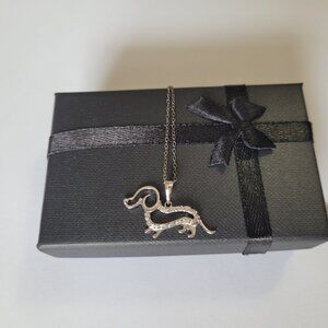 Dog Diamond Sterling Pendant Necklace Dachshund Weenie Doxie Dog Lover