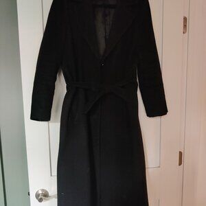 Oversized black wool coat with tie