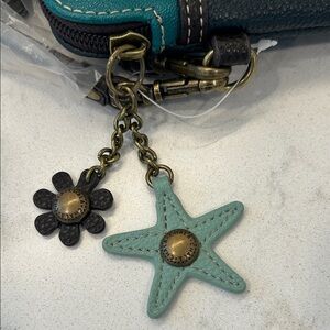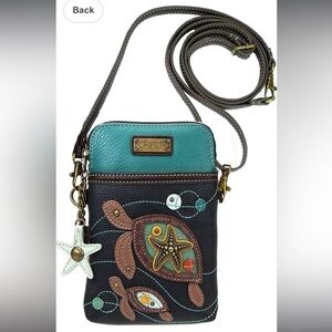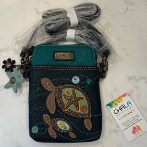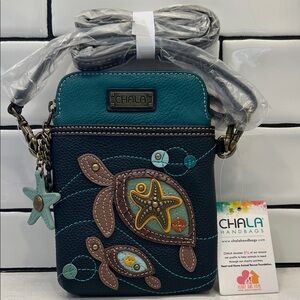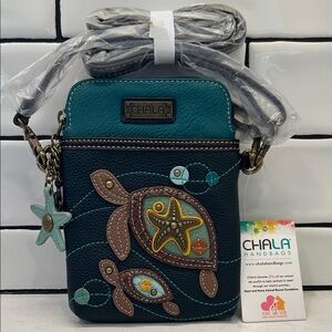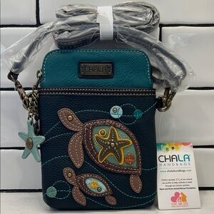 Chala Teal and Navy Sea Turtle Charms Vegan Convertible Crossbody Bag NWT