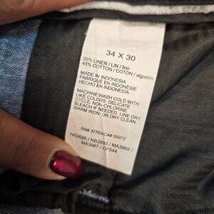 Perry Ellis Linen Blend Dress Pants Mens 34x28 Blue Flat Front