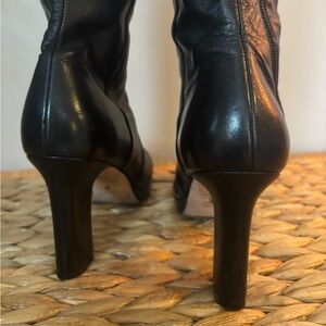 Chic knee high boots by Stuart Weitzman. Sleek black leather design. Perfect for stylish outings. Good condition, comfortable and lovely, soft leather.
