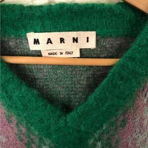 Marni Mens Mohair Wool V Neck Striped Sweater