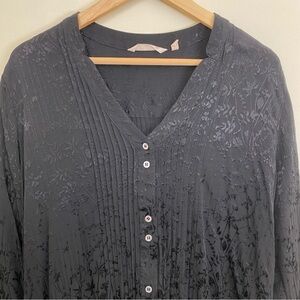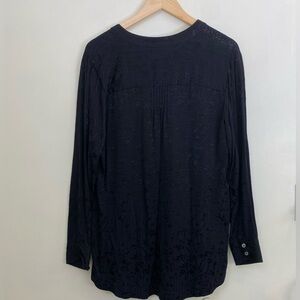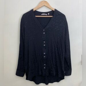 Soft Surrounding Silky Jacquard Pin Tuck Blouse Black Long Sleeve Womens Size L