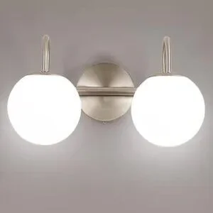 Brushed Nickel Modern Bathroom Vanity Light with White Milk Glass Globes