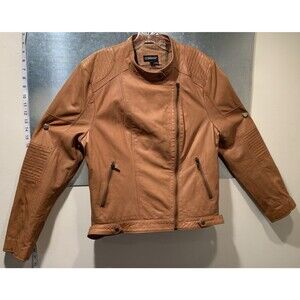 Corbani Quilted Shoulder Brown Asymmetrical Leather Womens Moto Jacket Size XL