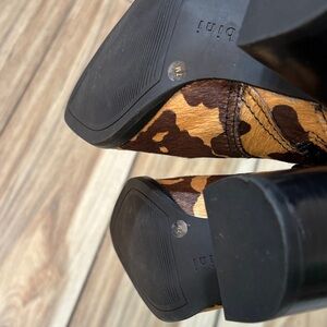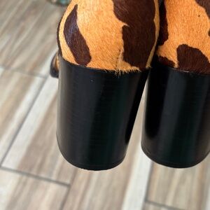 Stylish leopard print ankle boots. Features bold pattern and sturdy black heel. Perfect for a chic look. Worn once. Great condition Calfskin hair.