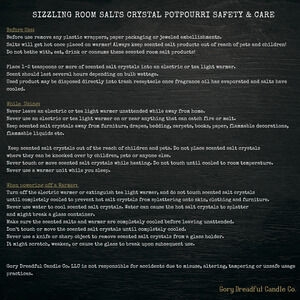 Natural rock salts scented with luxury fragrance oils, enhanced by a touch of beautiful color, biodegradable sparkles and mica to create fragrant salt crystal potpourri for your warmer. May also be used in a sachet, glass or metal non-food container as potpourri.