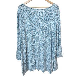 Croft & Barrow Relaxed Blue Print Bell Sleeve Pullover Flowy Blouse Top. 3X Plus