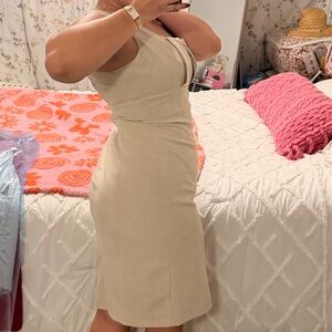 This elegant cream sleeveless dress is perfect for any occasion. Its classic design offers a timeless look. Michael Kors