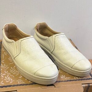 Cheerful yellow crossbody by Lug. Features quilted texture and floral interior. Includes zippered compartments.