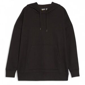 Zella Cara Hoodie in Black. Size: 2X. Cozy everyday hoodie in a supersoft cotton-blend fleece with a slim, flattering fit. Perfect for lounging, errands or casual layering. Features: drawstring hood, long sleeves with ribbed cuffs, kangaroo pocket. 64% cotton, 36% polyester. Excellent pre-loved condition
