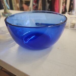 Elegant blue glass bowls. Perfect for dining. Adds a touch of sophistication.