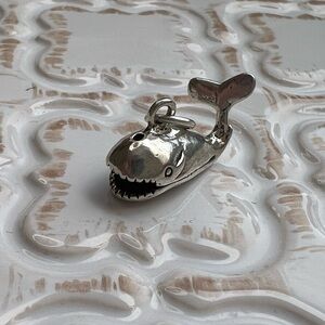 This charming little whale features sweet details including a sculpted tail, open mouth, and polished silver finish.