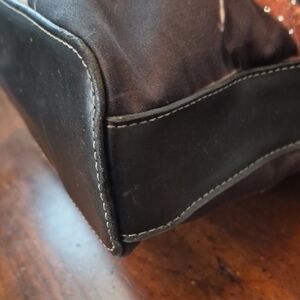 Zipper works properly. No rips, tears, stains. Good pre-owned condition tote bag!