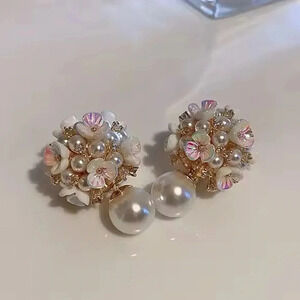 Perla White Shell Flower Stud Earrings
