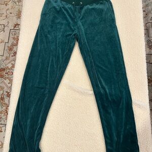 Stay comfortable and stylish with this green velour track suit. Perfect for casual outings or lounging at home.