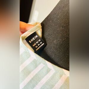 SHEIN XL Green White Striped Midi Sundress V-Neck A-Line Casual