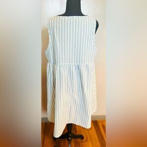 This SHEIN XL casual midi sundress features a sleeveless A-line silhouette with a flattering V-neckline and light green & white vertical stripes for a breezy, effortless look. Designed with a relaxed fit that drapes comfortably while still offering shape, making it ideal for everyday wear, vacations, brunch, beach days, or casual outings.