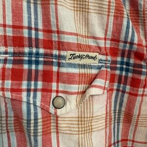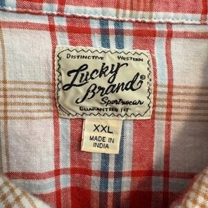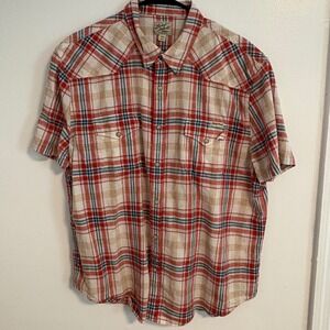 Lucky Brand Plaid Western Snap Shirt Men's XXL Short Sleeve Cotton Linen Blend