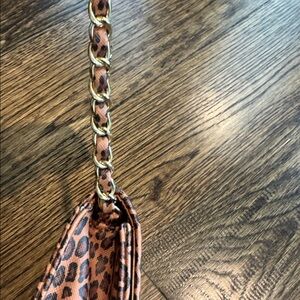 Elegant purse with a bold leopard pattern. Features a stylish chain strap. Ideal for a chic look.