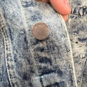 Fringe Denim Distressed Jean Jacket Medium Womens