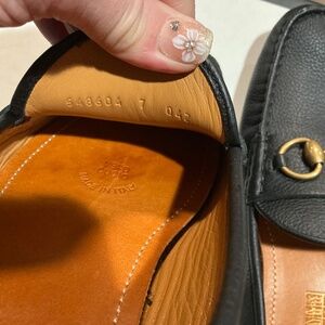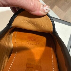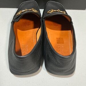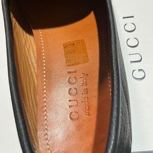 Black leather GUCCI Hebron horsebit loafers. Black leather upper. Worn once inside. Like brand new. Stickers still in place. Just a bit too large for me. Box included. No dust bags. Women’s size 9-9 1/2. Men’s size 7.