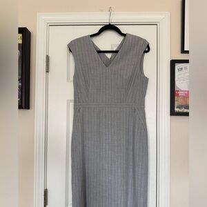 Ann Taylor Light Gray Pinstripe Midi Dress