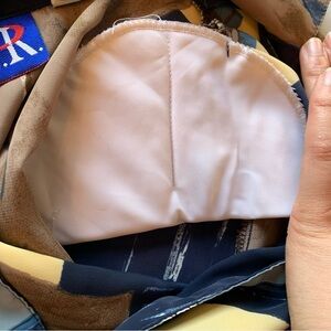 In shades of blue, brown, white, and yellow, this blouse exudes timeless charm. Its shoulder pads, in excellent condition, add a touch of structure to your look.