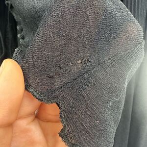 Good pre-owned condition. There is a very small faint hole on the front bottom left. You cant see it when worn. Please see last pic