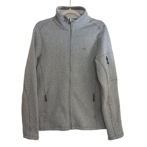 Heather gray utility jacket by Patagonia. Offers warmth and style. Ideal for outdoor adventures. Great pre-owned condition. Three zip pockets-one on sleeve and two I front.